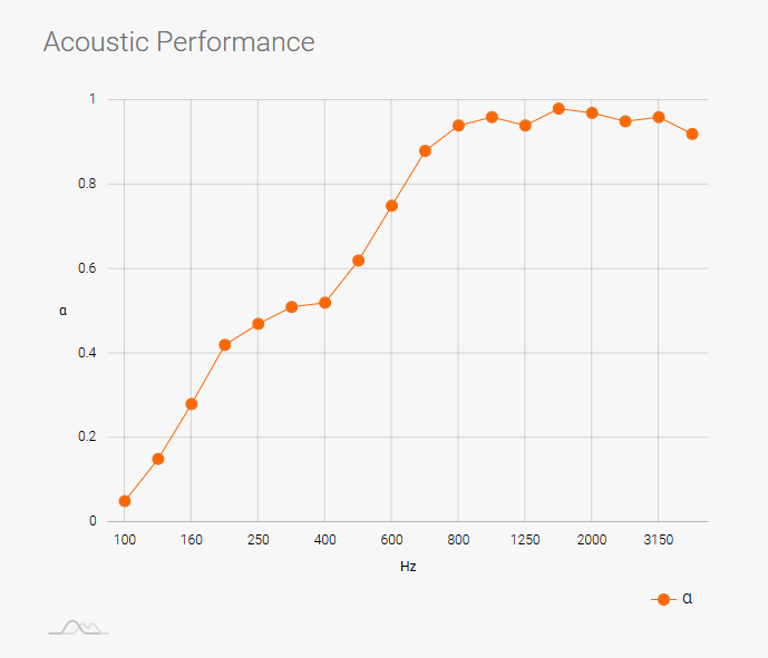 Vgrajeni perforirani trakovi na robu plošče povečajo absorpcijo zvoka v srednjem in nizkem frekvenčnem območju. Jedro plošče je narejeno iz visoko učinkovitega poliuretana z odprto-celično strukturo, še posebej učinkovito v frekvenčnem območju od 400 do 650 Hz, ki je najbolj značilno za človeški glas.