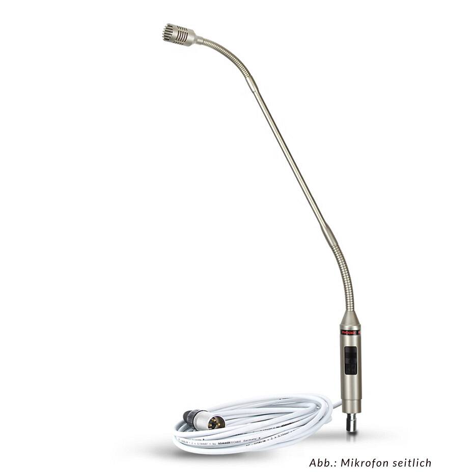 Mikrofoni PHOENIX MEG-1 so elegantni in kvalitetni mikrofoni, ki se zaradi svojega gibljivega vratu lahko prilagodijo na različna okolja in potrebe. Napajanje poteka preko mikrofonskega kabla in se dovaja iz ojačevalnika z napetostjo od 20 do 52 V.